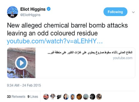 Figure 3 Screenshot of twitter posting by Bellingcat’s Eliot Higgins showing the pink puddles.